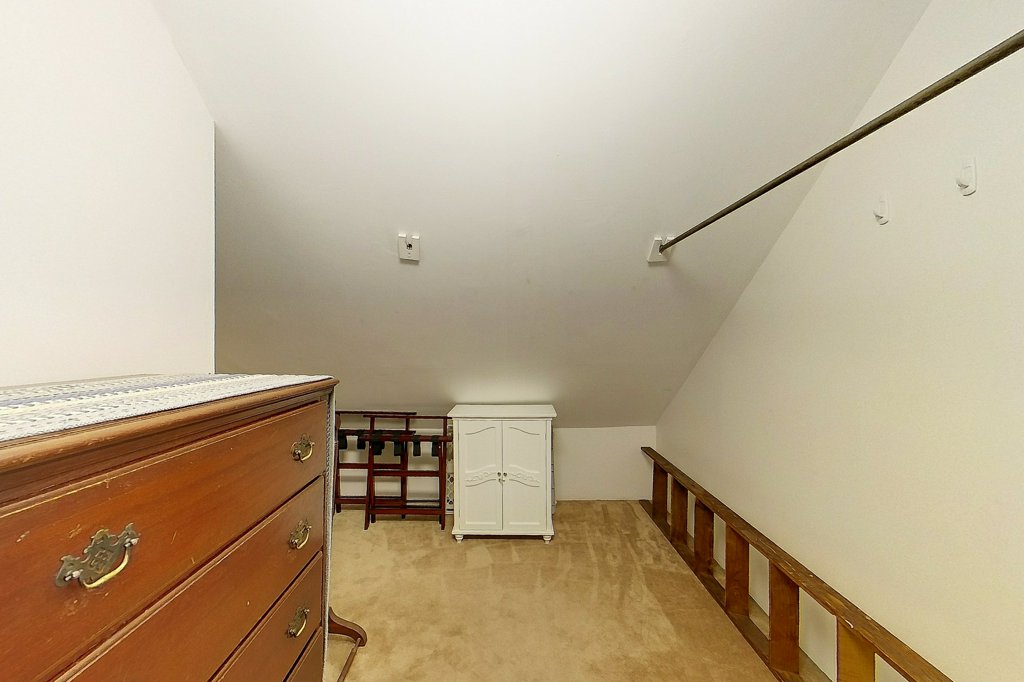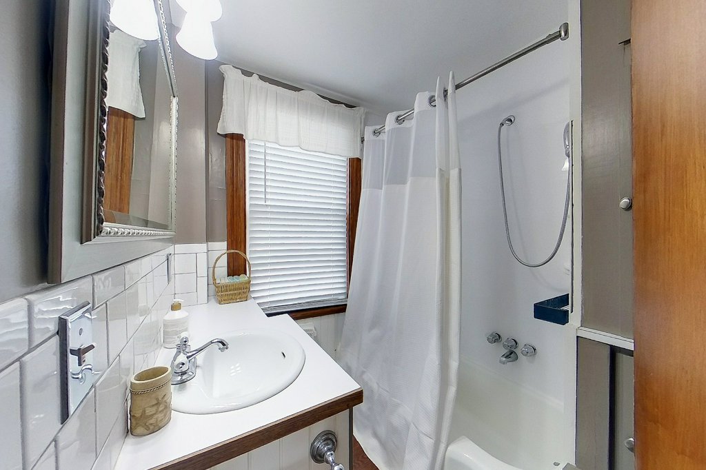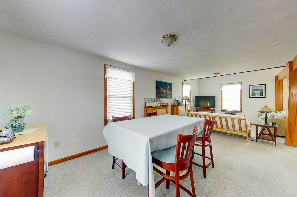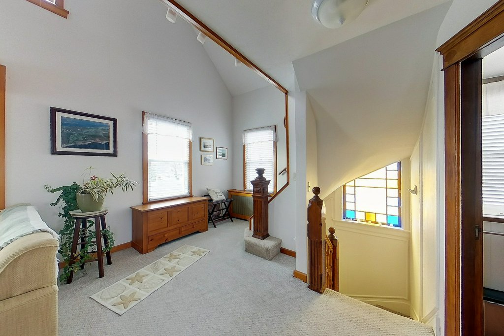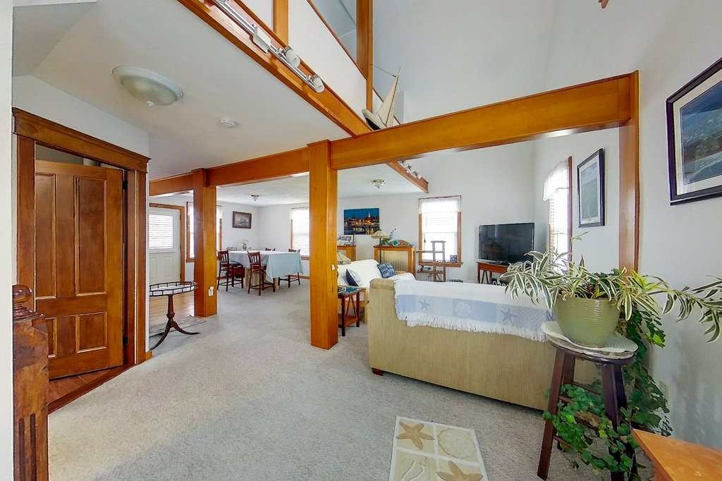 The main level features high ceilings and a spacious open floor plan, enhanced by warm wood trim and large windows that make the space bright yet cozy. Upstairs, you’ll find a comfortable bedroom with a newly added skylight and a walk-in closet.