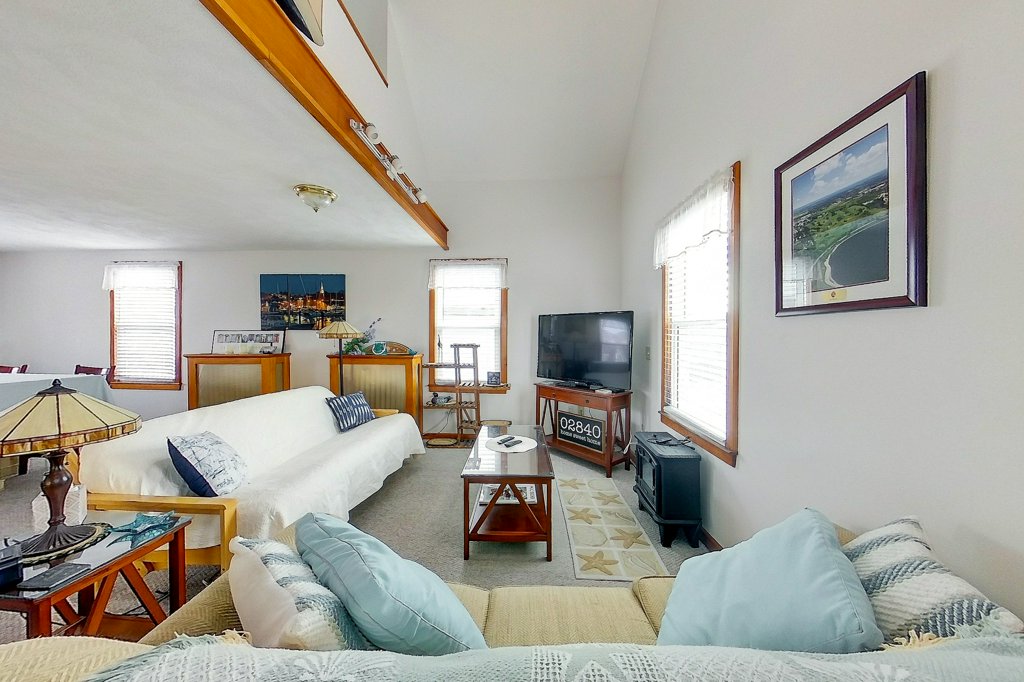 Fully Furnished Rental Available Now for a Yearly Term! This charming, oversized second-floor 1-bedroom loft apartment boasts 1200sqft of living space and is located in the happy residential North Broadway neighborhood. Conveniently close to the bridge, Middletown shopping, and downtown Newport.