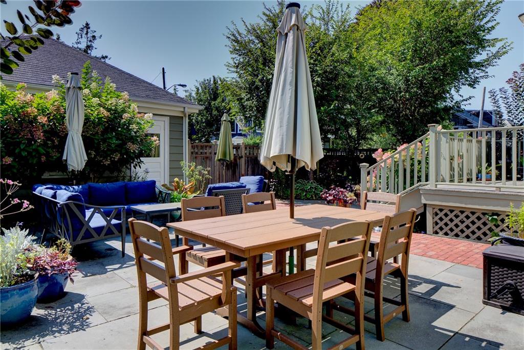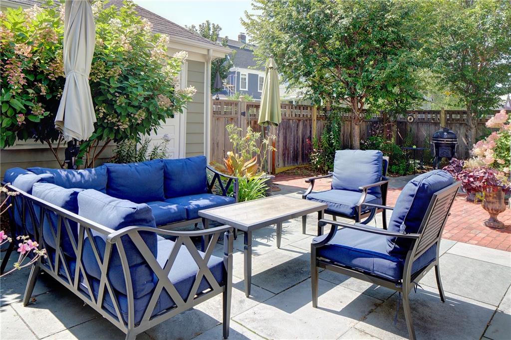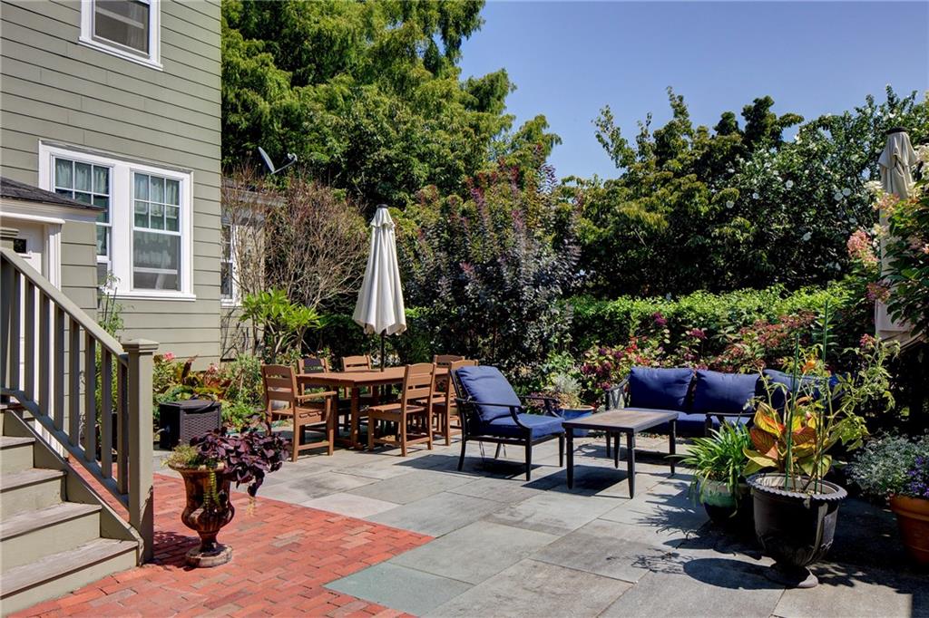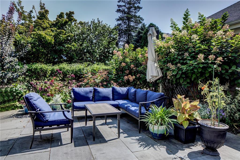Step outside to enjoy the private backyard with a beautiful bluestone patio offering multiple seating, dining, and grilling areas surrounded by mature landscaping. Additional amenities include a two-car garage, off-street parking for two vehicles.