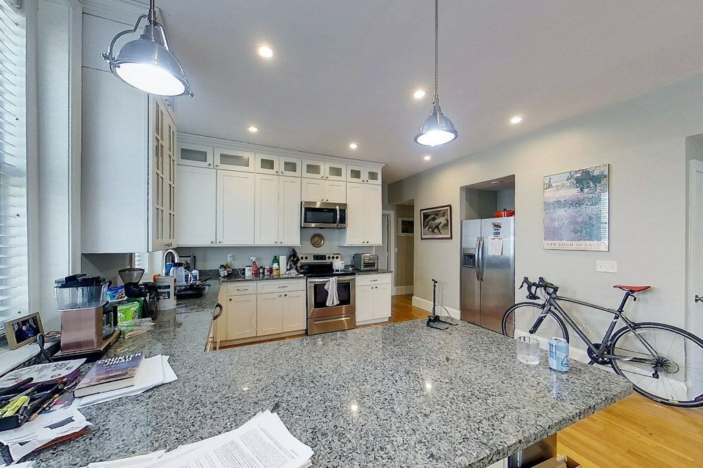 Includes utilities! Experience the vibrant pulse of downtown living in this stunning 1st-floor apartment! Boasting soaring ceilings, expansive windows that flood the space with natural light, and gleaming hardwood floors, this 1-bedroom, 1-bath residence offers a modern and inviting atmosphere. The open-concept design seamlessly connects the large kitchen, living, and dining areas. The kitchen is a chef’s dream with cream shaker cabinets, stainless steel appliances, and a convenient breakfast bar. Ample closet storage ensures a clutter-free lifestyle. Enjoy the convenience of shared laundry in the basement with interior access. Utilities are included for hassle-free living. On-street parking only. No pets allowed.