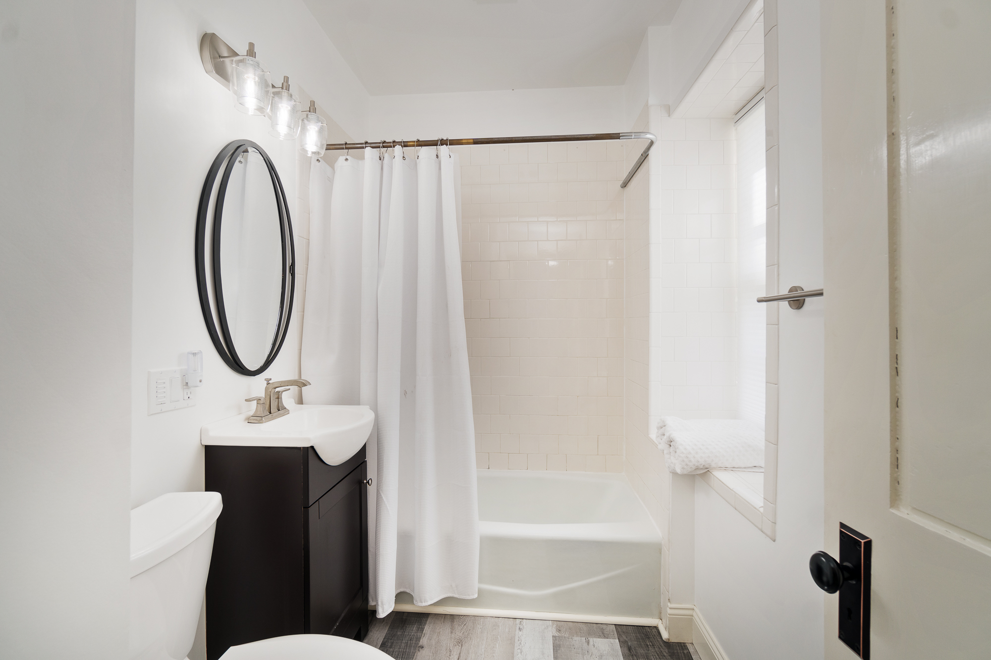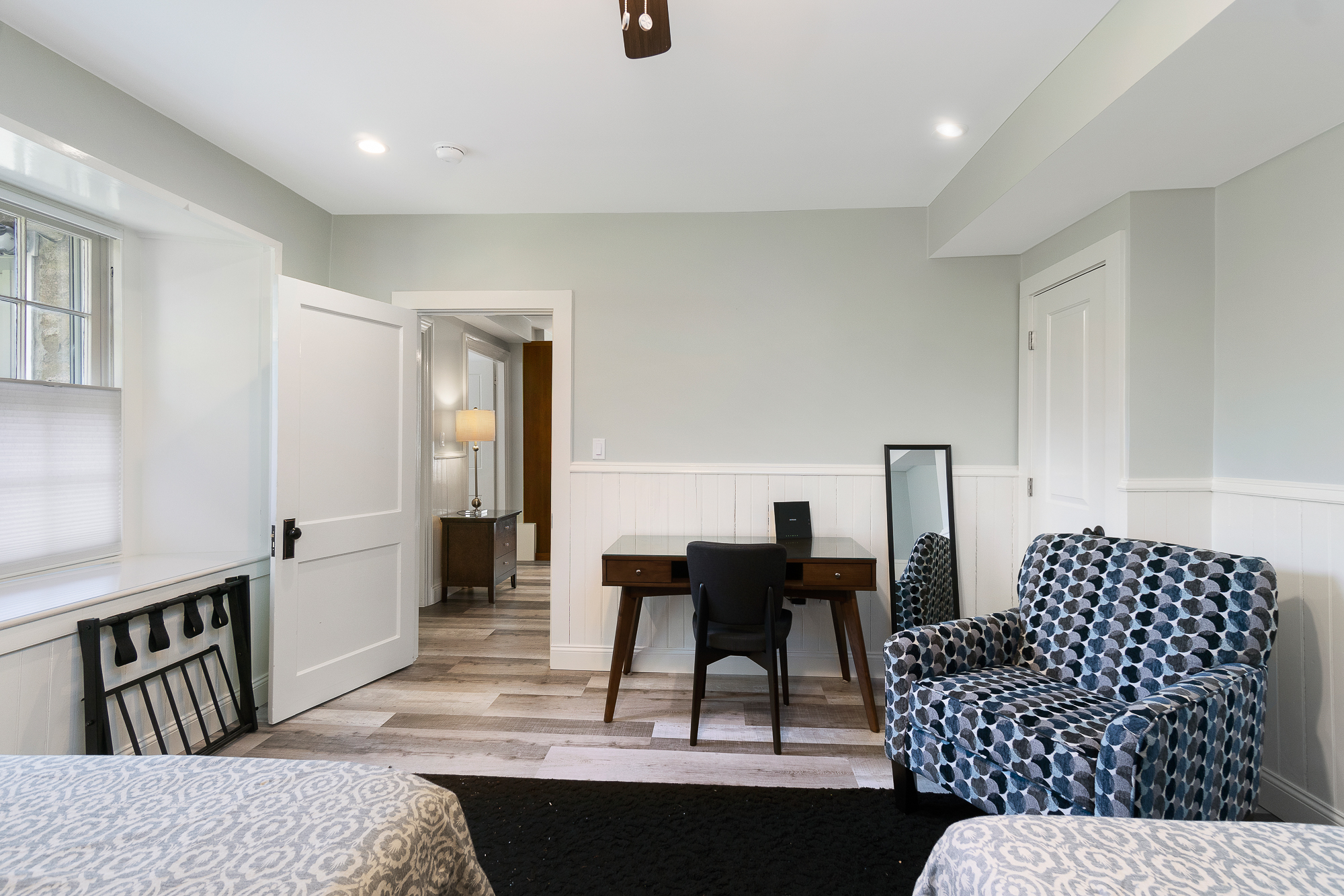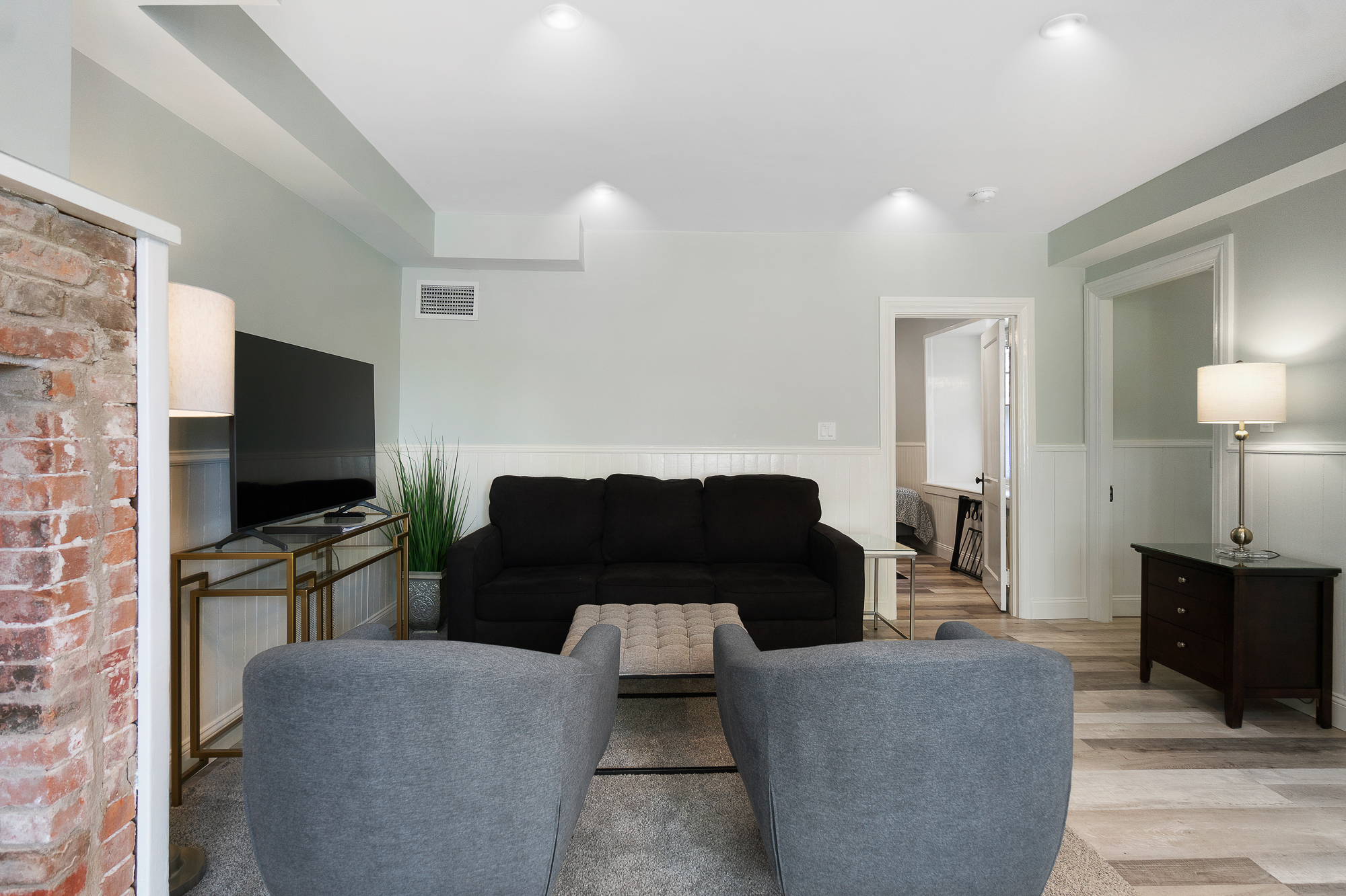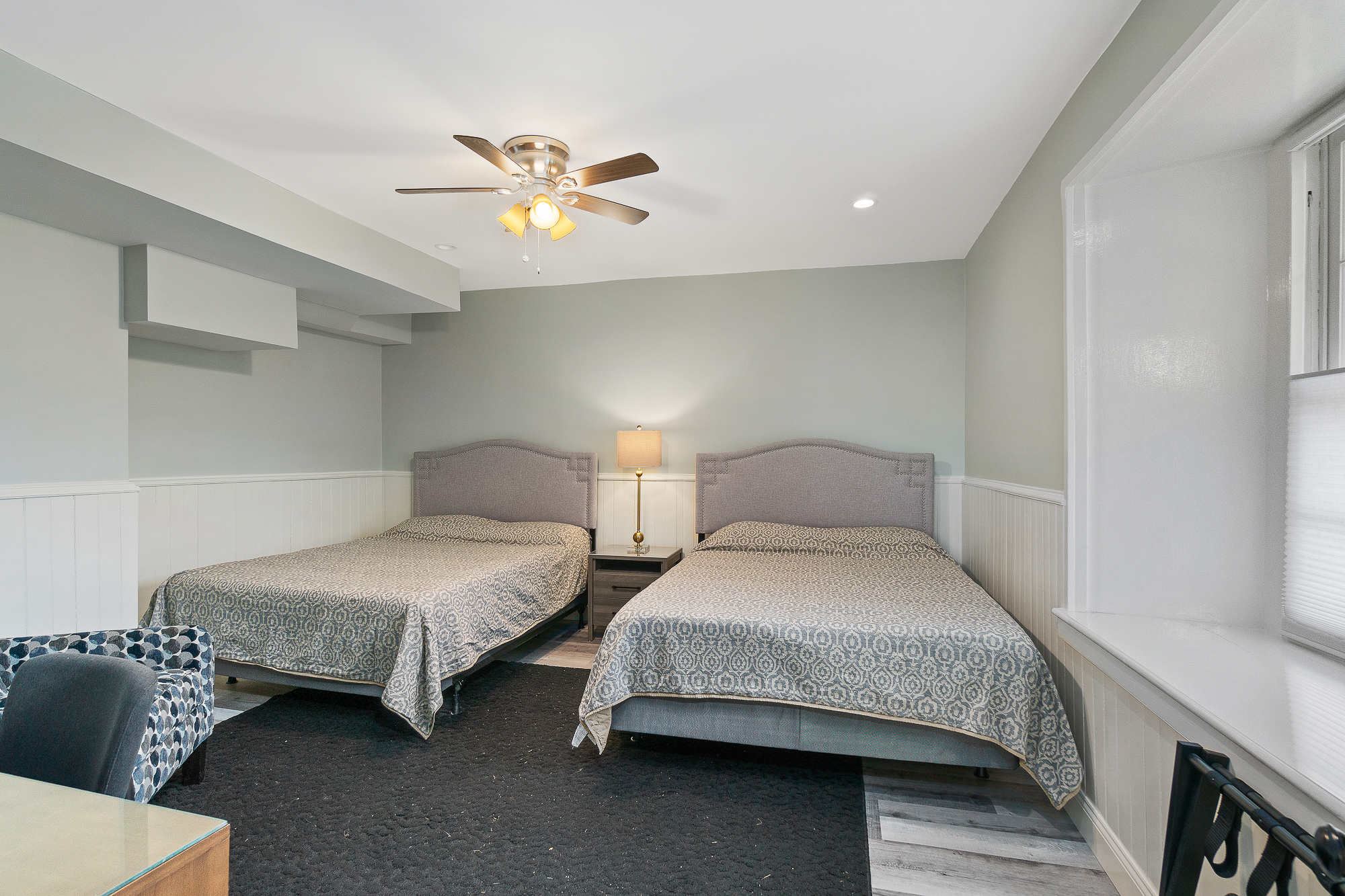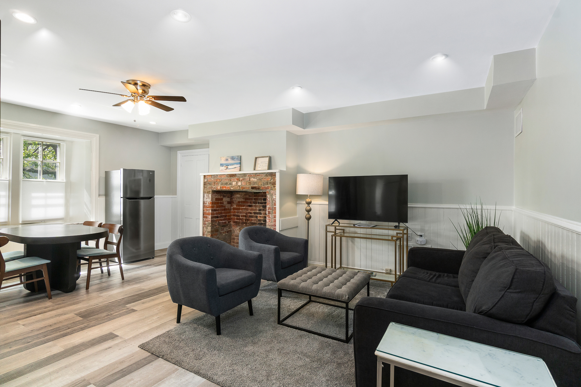 Beautifully remodeled garden unit in a large home on Coggeshall! Enter into a small foyer with a drop station to hang jackets and bags. Into the unit you will find an open living, kitchen, dining room. New kitchen cabinetry, granite counter tops and dishwasher! Large ornamental brick fireplace in the center of the room. Large Bedroom with two queen beds. Comfortable chic beach feel though-out the unit. Shared Yard. Easy parking on street parking behind the home.